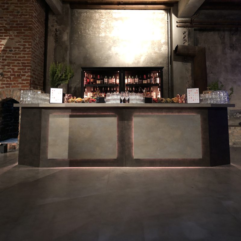 Un bar effetto ‘corten’, quasi arrugginito, ma nuovo e di tendenza, perfetto per contesti Industrial o in location moderne.